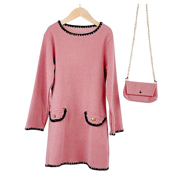 D/Pink Rib Contrast Jumper Dress & Bag 4-14
