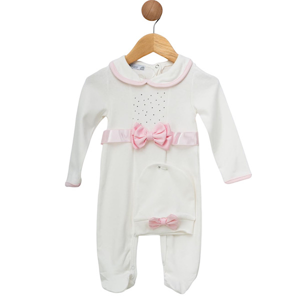 Ivory/Pink 2PC All-In-One Outfit & Hat Set 0-9M