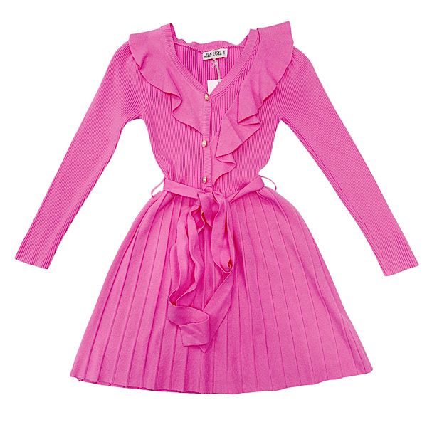 Fuschia Pleat Ruffle Woven Rib Tennis Dress 4-14