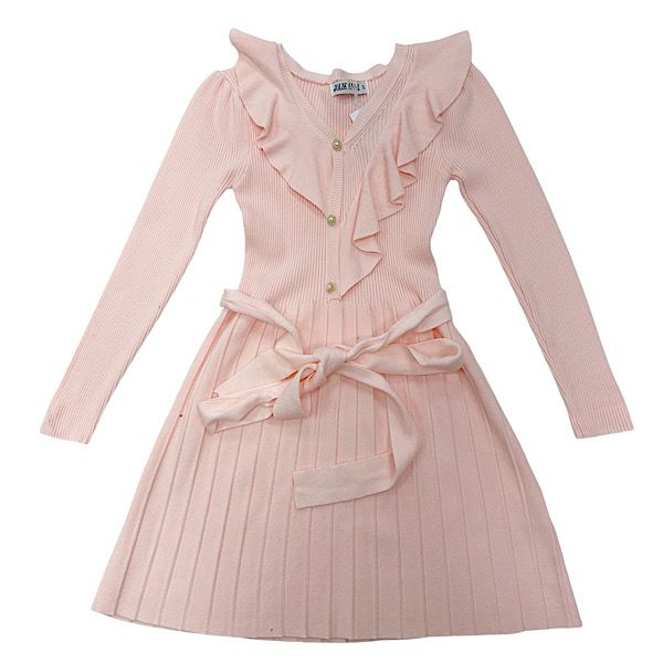 Blush Pleat Ruffle Woven Rib Tennis Dress 4-14