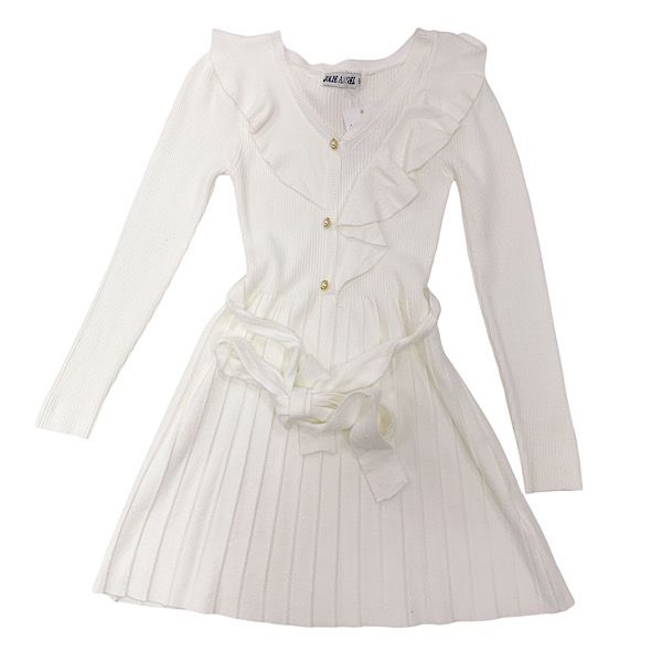 Ivory Pleat Ruffle Woven Rib Tennis Dress 4-14
