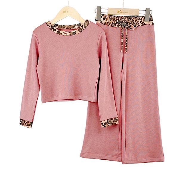 Pink Leopard Print Contrast 2PC Co-ord Set 4-14