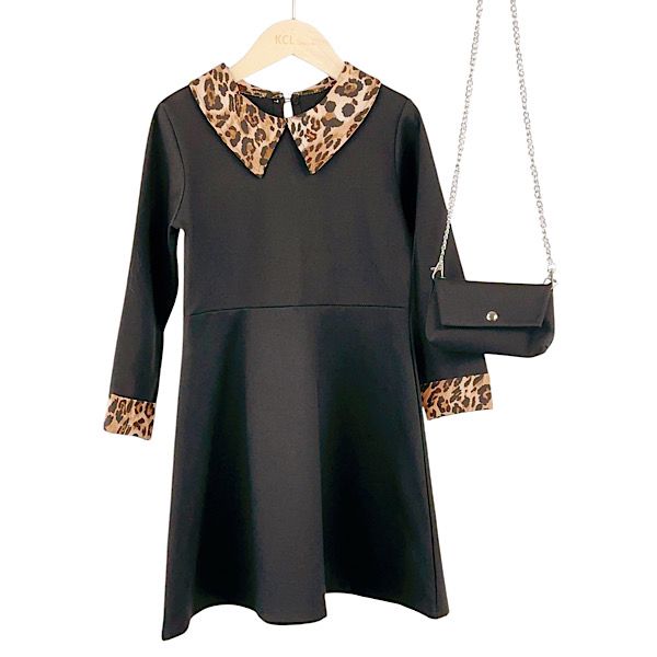 Black Leopard Contrast Skater Dress & Bag 4-14