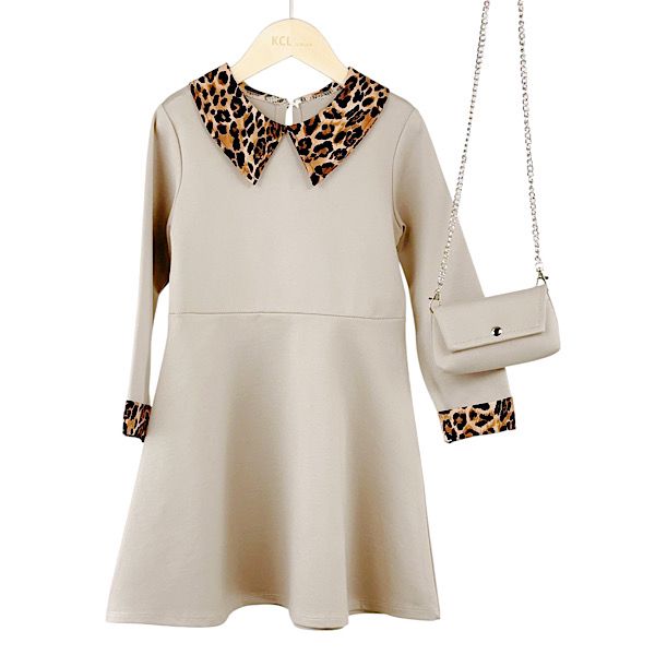Beige Leopard Contrast Skater Dress & Bag 4-14