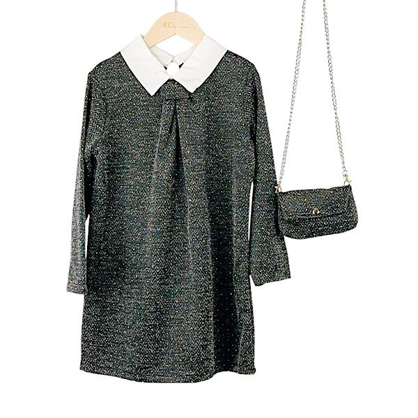 Charcoal Speckled Shirt Dress & Bag 4-14