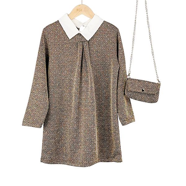 Taupe Speckled Shirt Dress & Bag 4-14