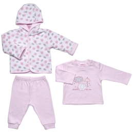 B/Pink Elephant & Cloud 3PC Layette Set 0-9M
