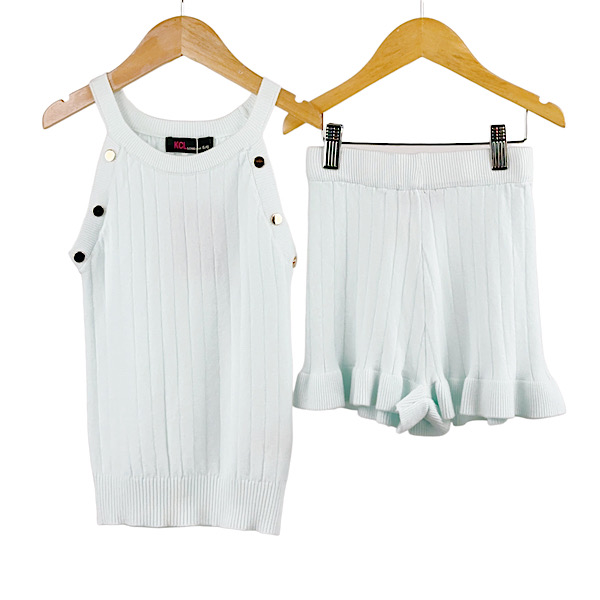Ivory Rib Tank Top & Frill Shorts Set 4-13