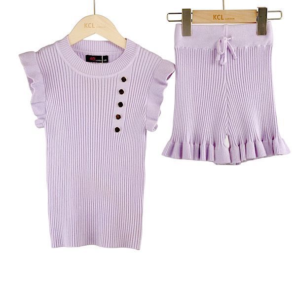 Lilac Button Frill Co-ord Shorts Set 4-13