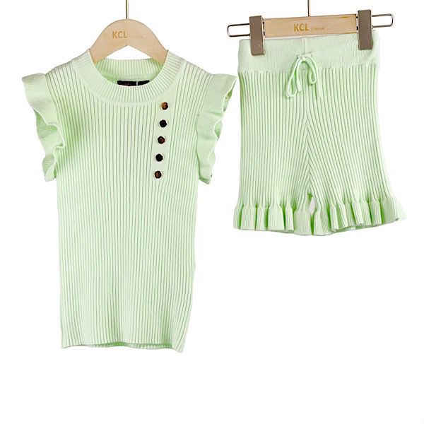 Mint Button Frill Co-ord Shorts Set 4-13