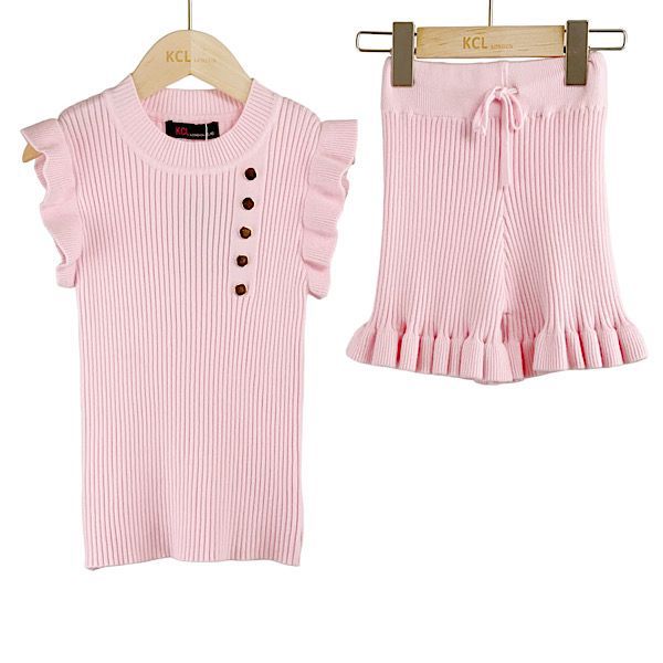 B/Pink Button Frill Co-ord Shorts Set 4-13