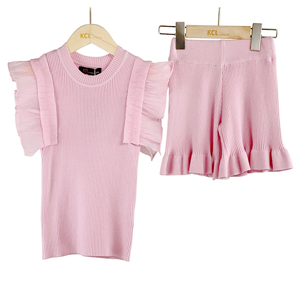 D/Pink Frill Co-ord Shorts Set 4-13