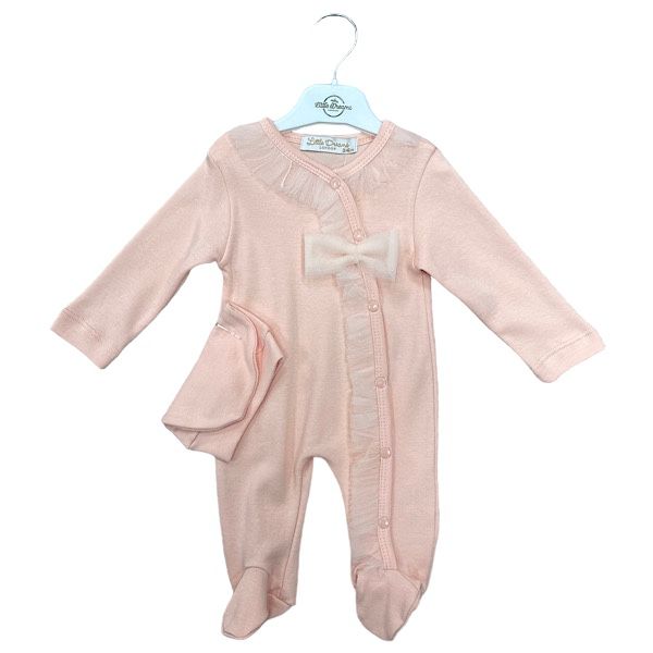 Salmon Peach Lace Bow Crossover Sleepsuit & Hat Set 0-9M