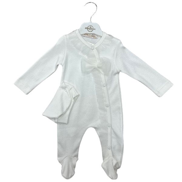 White Lace Bow Crossover Sleepsuit & Hat Set 0-9M