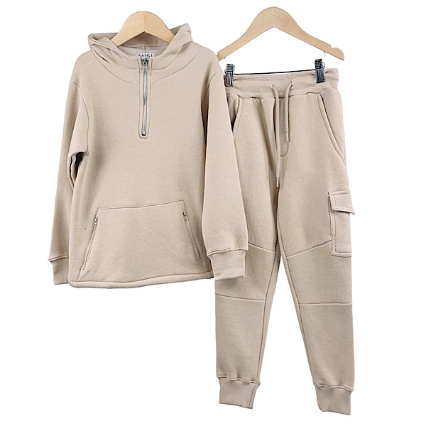 Beige Combat Half zip Hoodie Lounge Set 2-10
