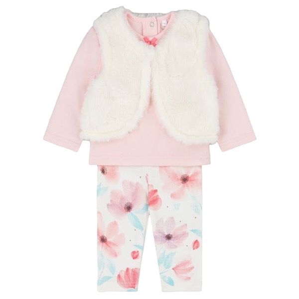 B/Pink & White Fur Gilet 3PC Set 3-24M