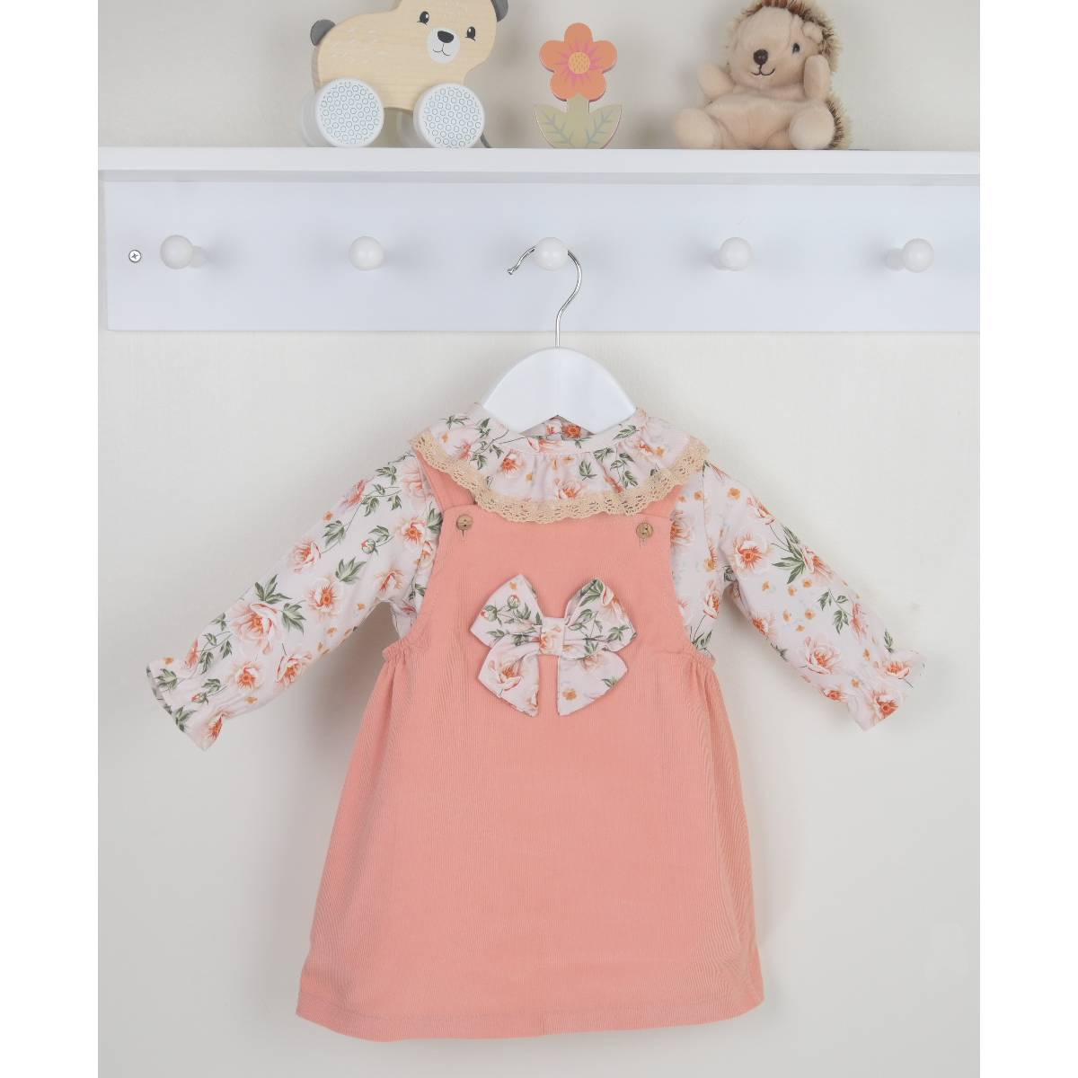Pex Peach Floral Bow 2PC Dress 3-18M