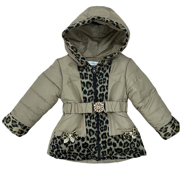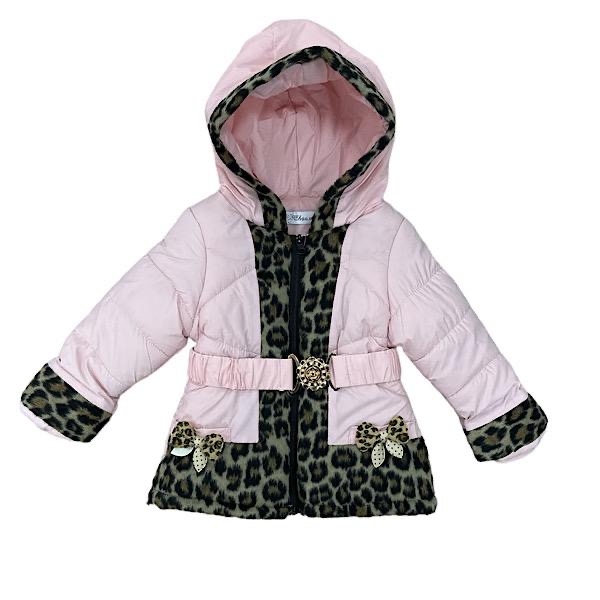 B/Pink Leopard Print Belted Padded Coat 2-6