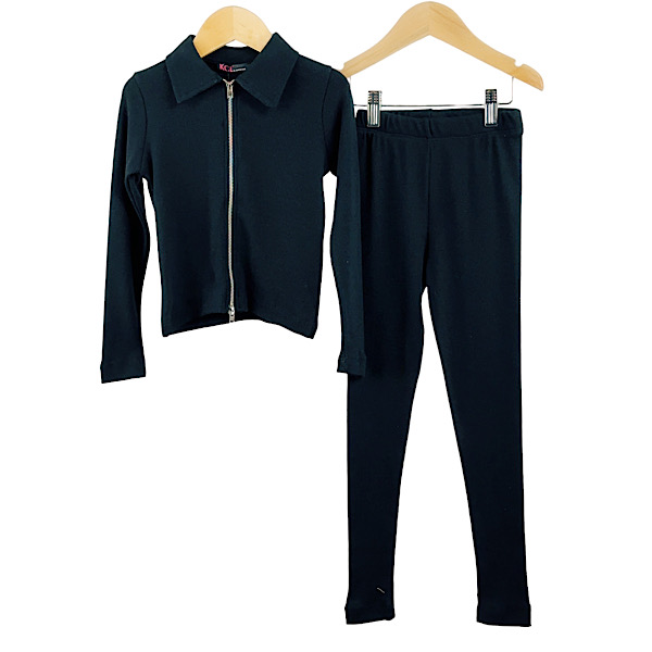 Black Long Sleeve Zipped Top & Co-ord Trousers Set 4-14yrs