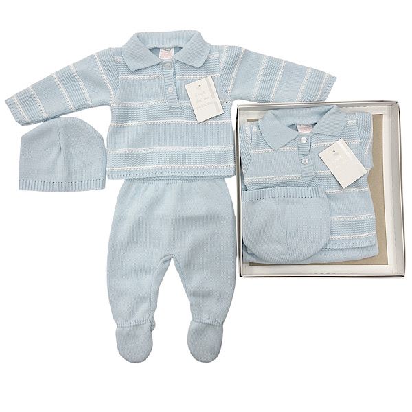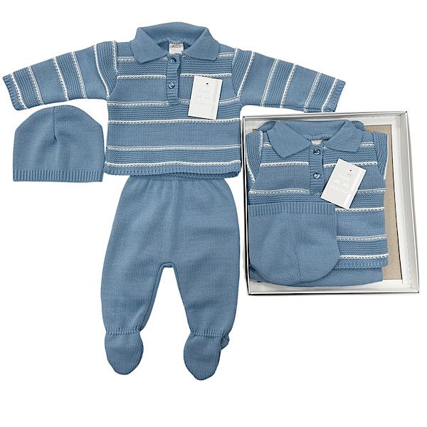 Steel Blue 3PC Striped Outfit Gift Set NB
