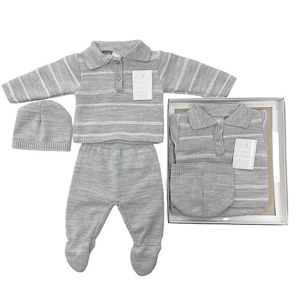 Grey 3PC Striped Outfit Gift Set NB