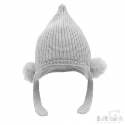 L/Grey Knitted PomPom Hat NB-12M