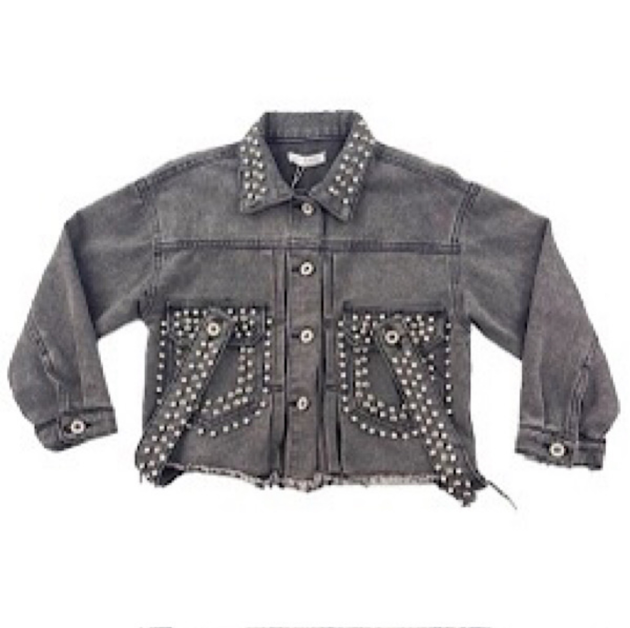 Washed Grey Studded Denim Jacket 4-14