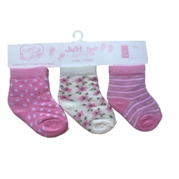 Pink & O/White 3Pack Ankle Socks 0-12M
