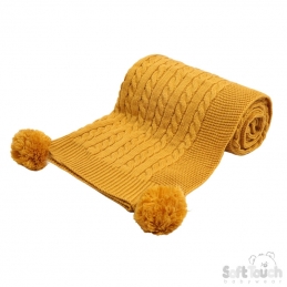 Mustard Cable Knit PomPom Wrap