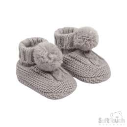 PomPom Cable Knit Sock Booties NB-12M